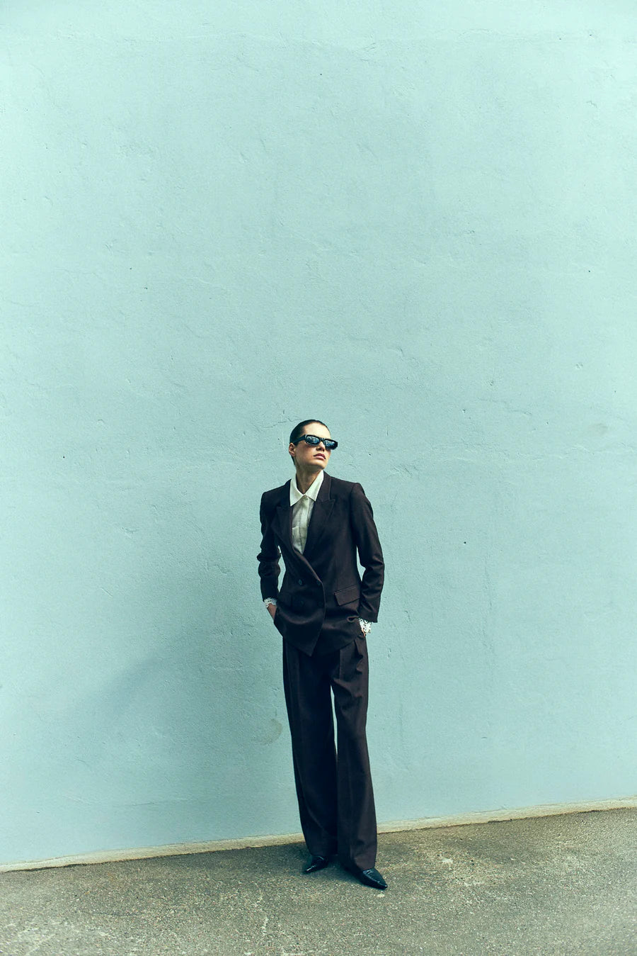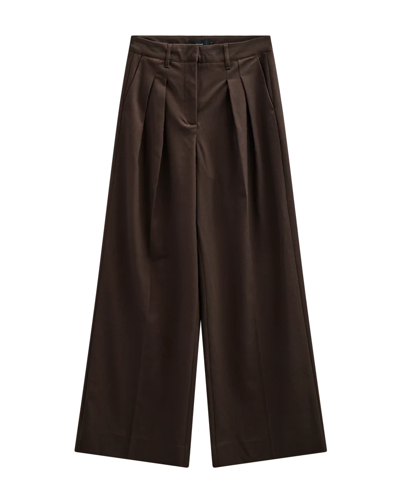 TAILOR-PANTS is a pair of high waisted pants in a premium material with a concealed hook-and-eye and zip fastening, wide and flared pant legs as well as front pleats that highlight the loose fit.