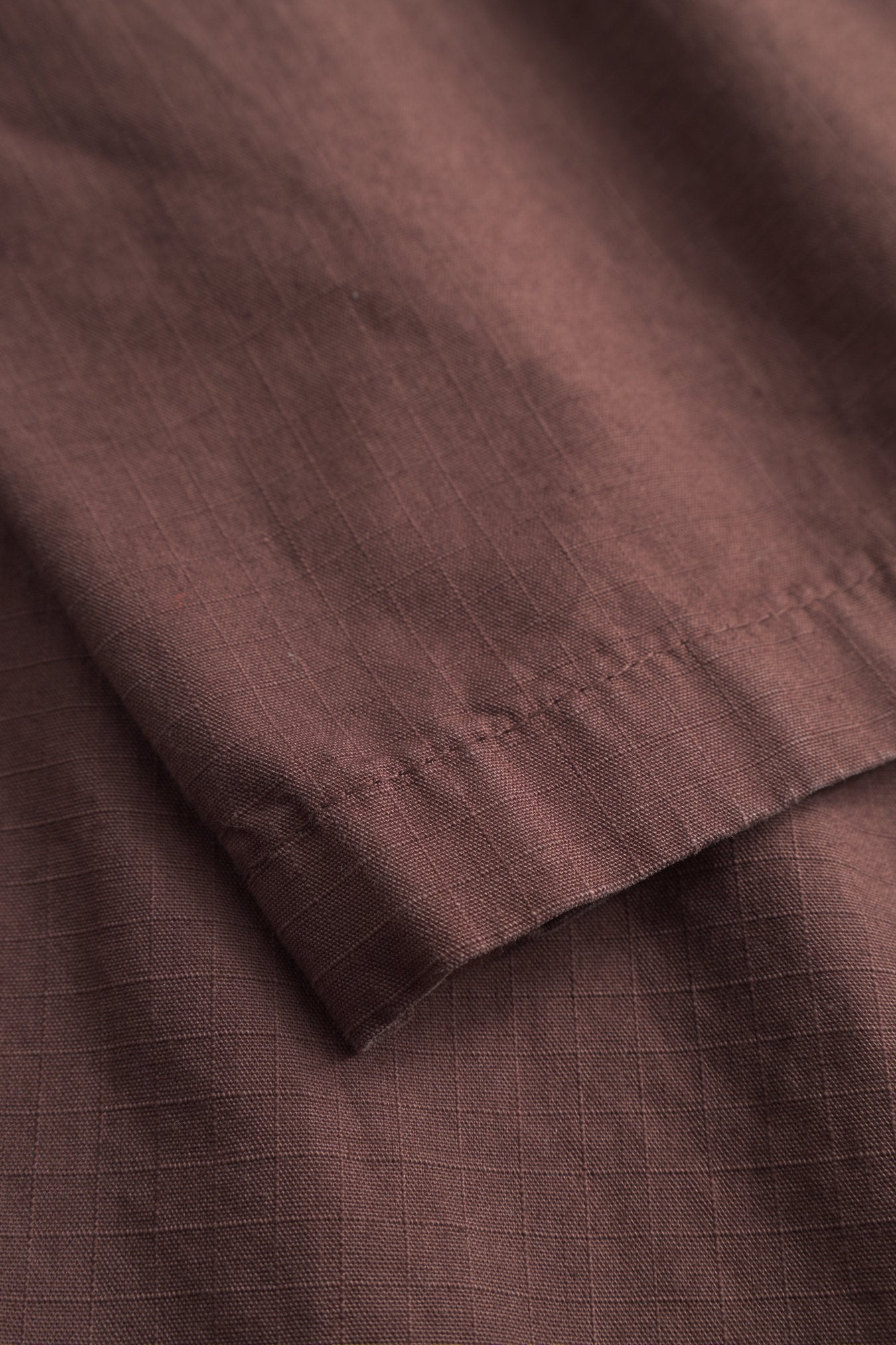 A relaxed fitting elasticated pant, with a wide cut leg constructed from an Italian midweight cotton ripstop and garment dyed for a rich colour. Drawcords sit on the inside waistband, designed to be adjusted and hidden away. Features fatigue style pockets at front and back, a zip fly, button closure and branded tab at the back.