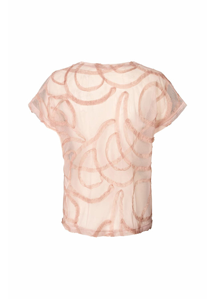 This top stands out with a transparent ‘scribble’ pattern, made from a lightweight and airy material in a feminine pink colour.