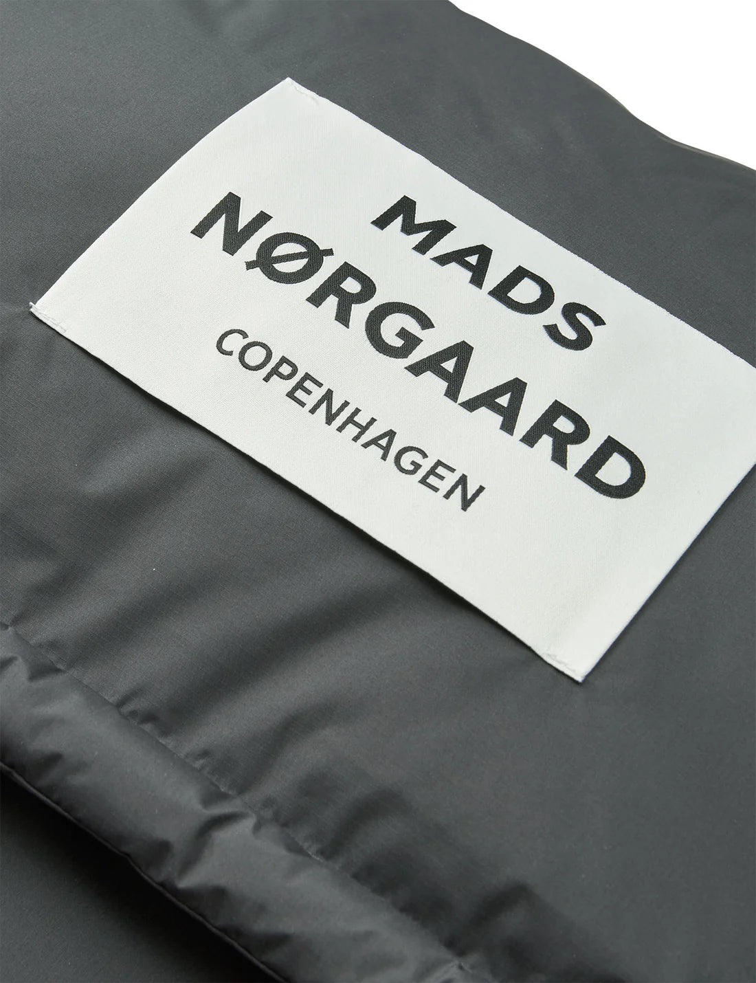 Bag with puffy look. Shoulder strap and logo label on the front. One large interior compartment with a small side compartment.