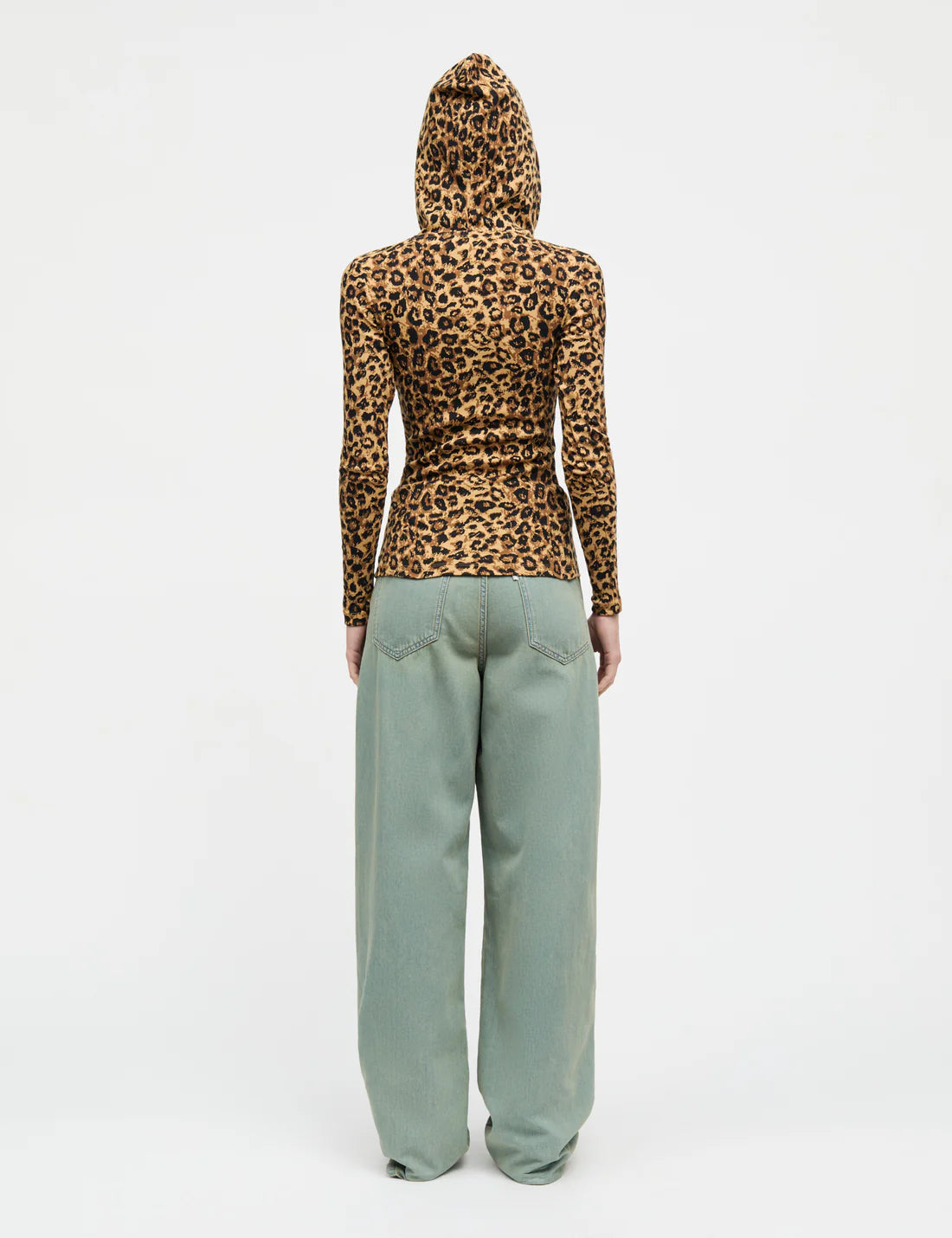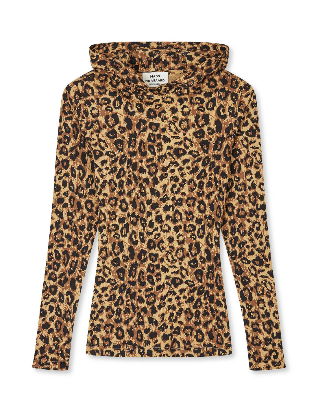 Stretchy and fitted long-sleeved T-shirt with hood and leopard print.
