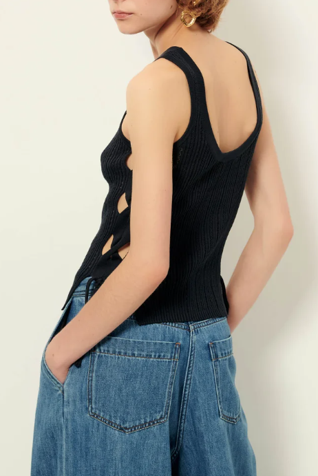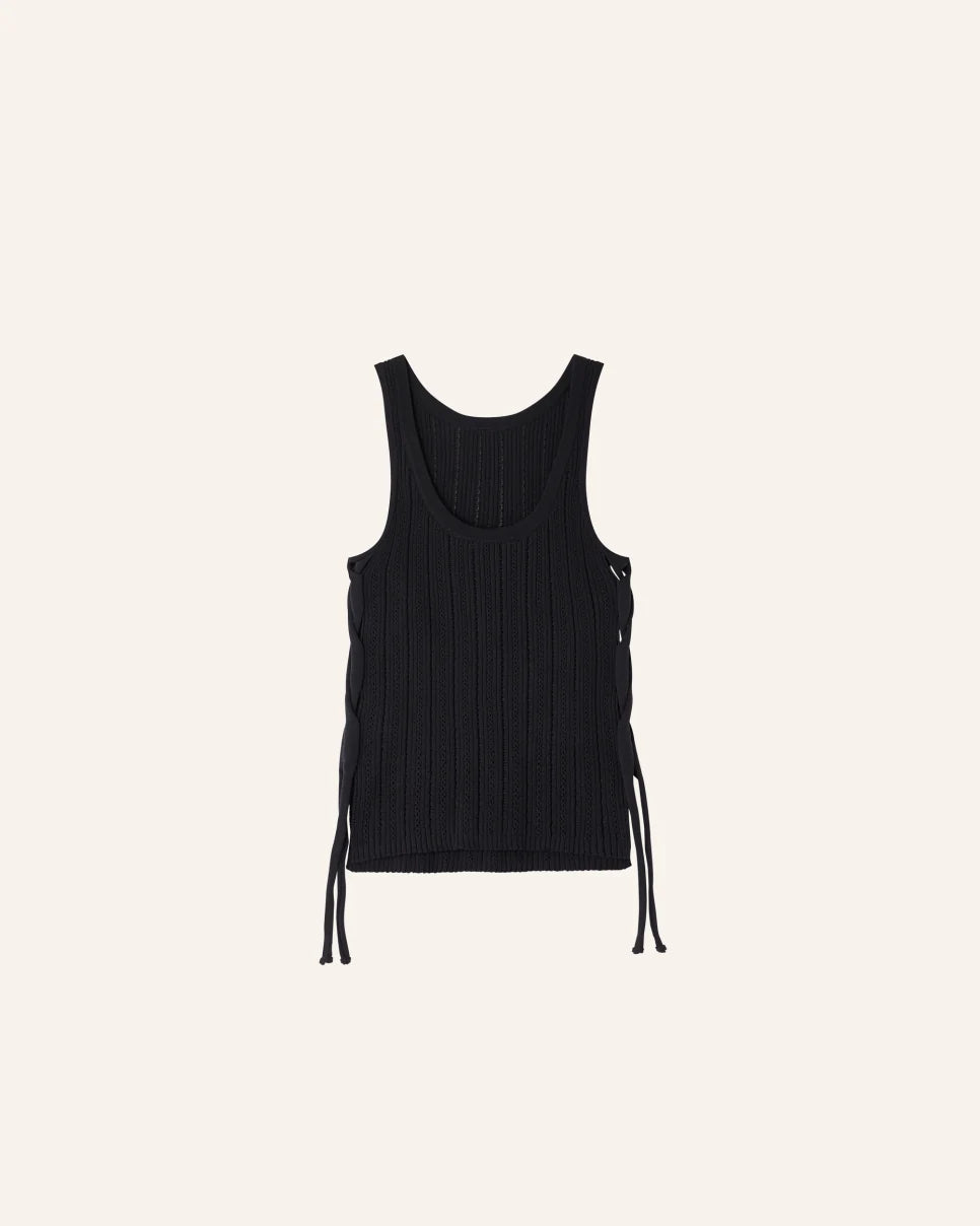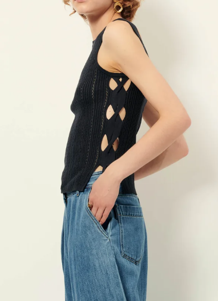 Tank top with braided details in a blend of ribbing and openwork stitches.