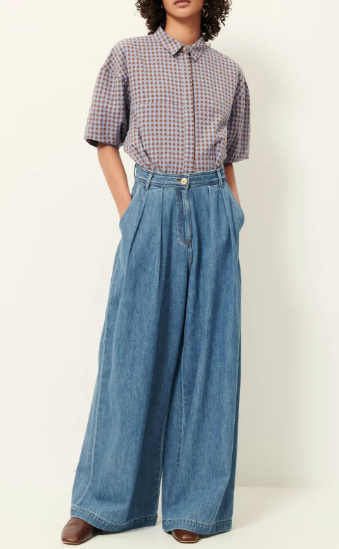 Ultra-baggy, high-waisted, pleated jeans in soft stonewashed indigo denim with a slight stretch.