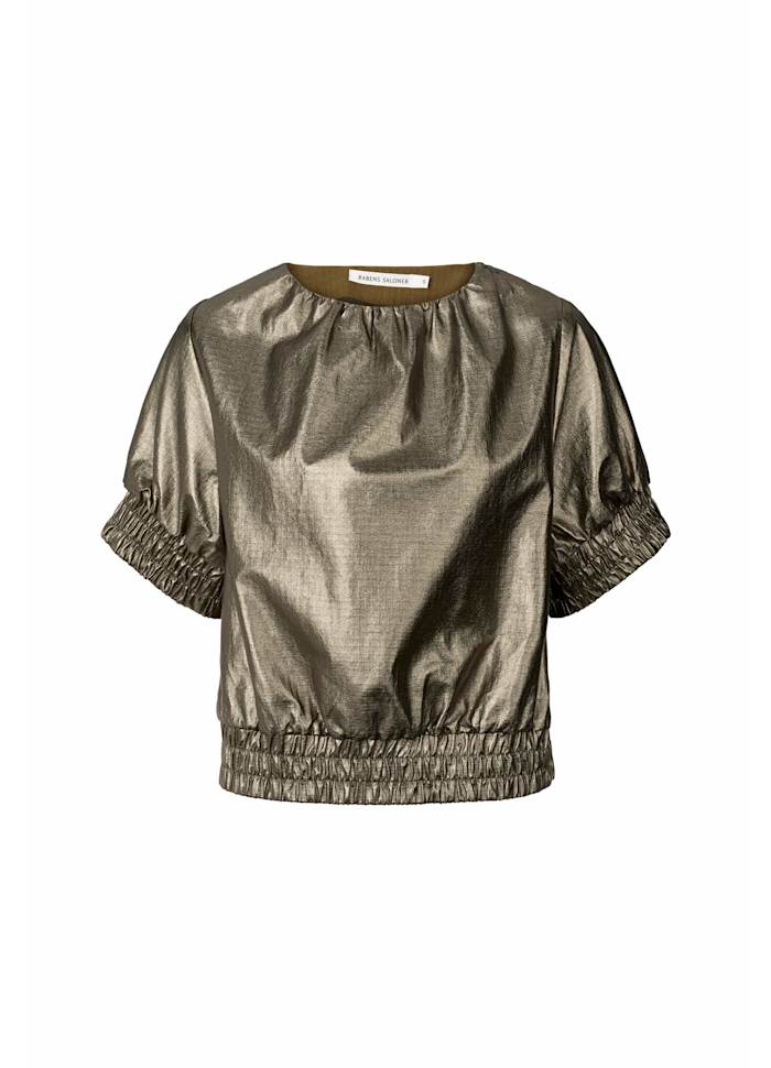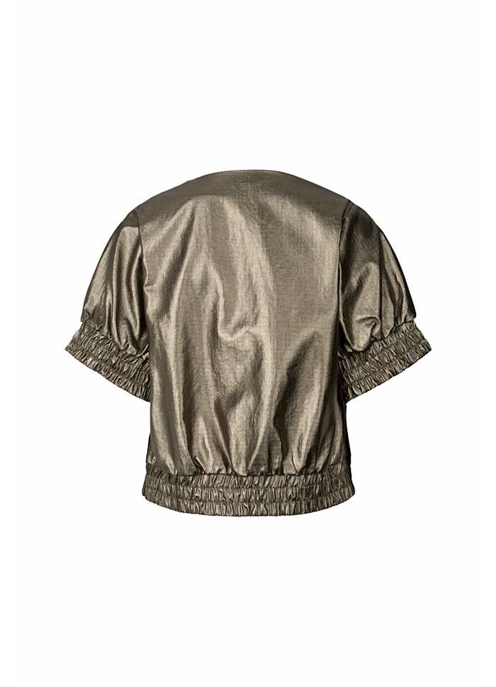 GINE foiled ripstop gathered top Metallic Olive