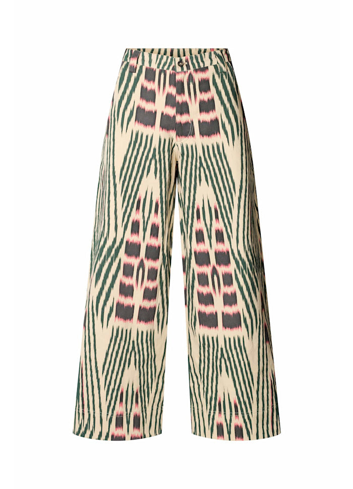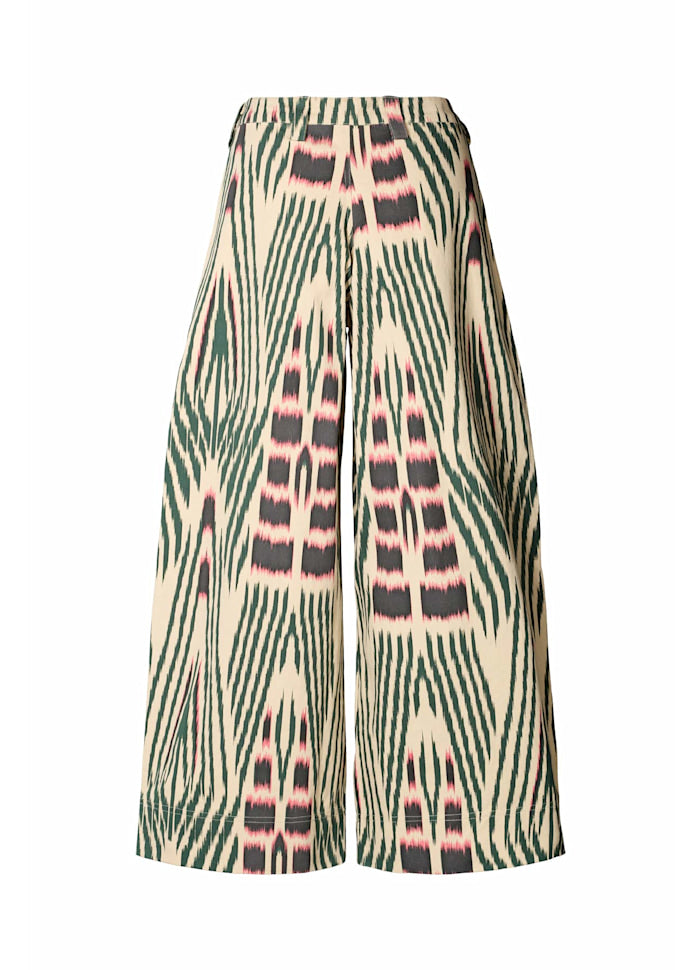 Flattering trousers characterised by a colourful ikat pattern, hand-dyed in the colour atelier in Bali.